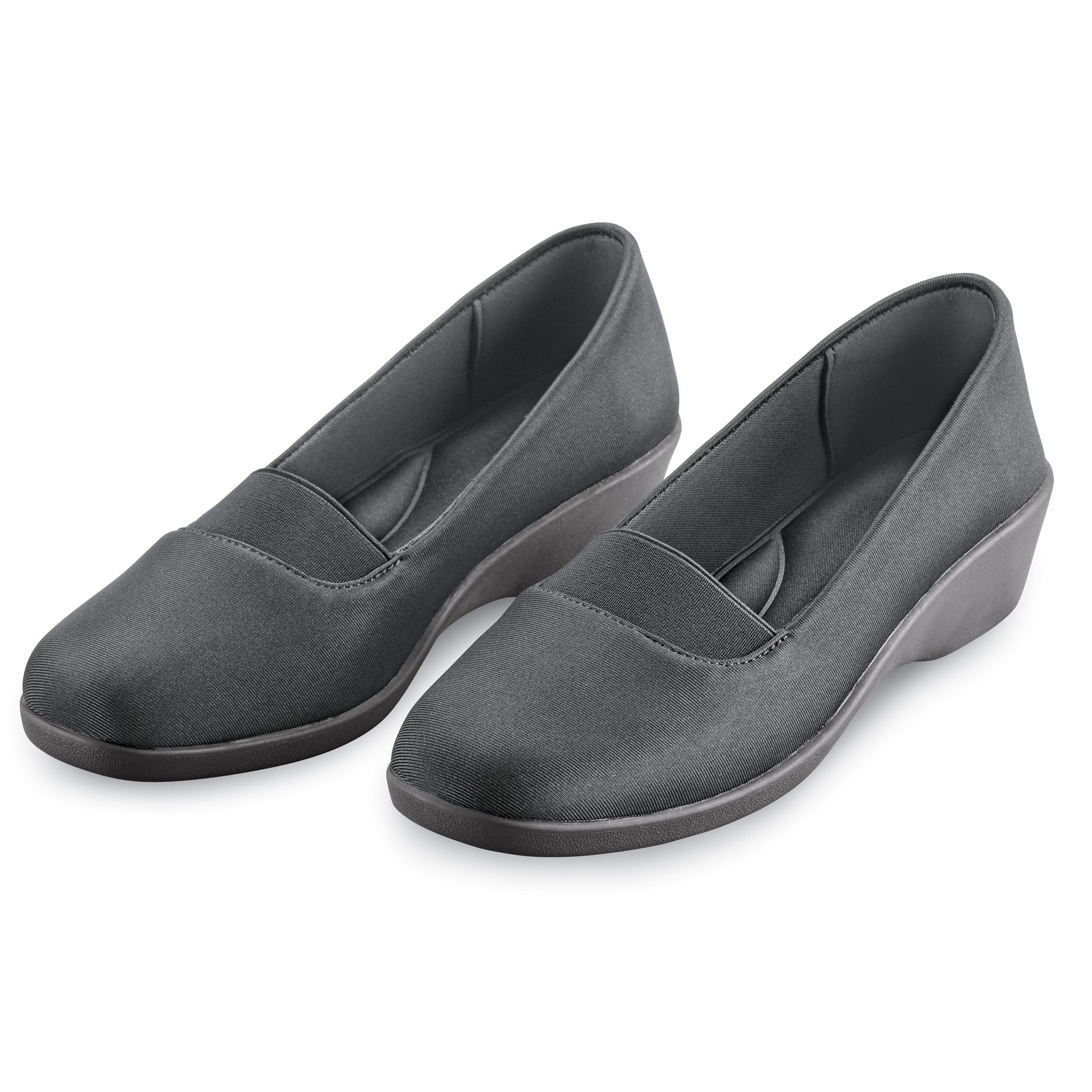 Comfortable Lightweight Ladies Slip-On Comfort Shoes 7 Women Black. Designed with comfort in mind, these stylish and comfortable slip-on shoes are ideal for everyday wear. The easy on/off design includes stretch uppers, cushioned insoles and lightweight flexible rubber soles. Polyester and vinyl acetate; imported. Ch... - Comfortable Lightweight Ladies Slip-On Comfort Shoes 7 Women Black. | | $17.99 More Information